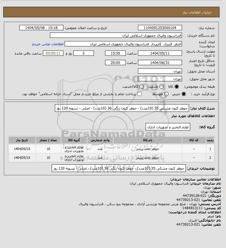 | 2 | -- | جوهر جامد پرینتر | عدد | لوازم التحریر و تجهیزات اداری | 10 | 1404/05/15 |