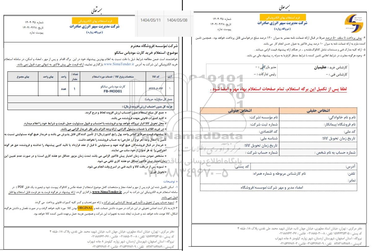 خواهشمند است ضمن مطالعه شرایط ذیل با دقت نسبت به اعلام بهترین پیشنهاد خود در این برگ اقدام و پس از مهر، امضاء و اسکن در سامانه استعلام خرید الکترونیکی این شرکت به آدرس www.SimaTender.ir بارگذاری نمایید. ارائه قیمت طی پیش فاکتور به تنهایی مورد قبول نمی باشد.