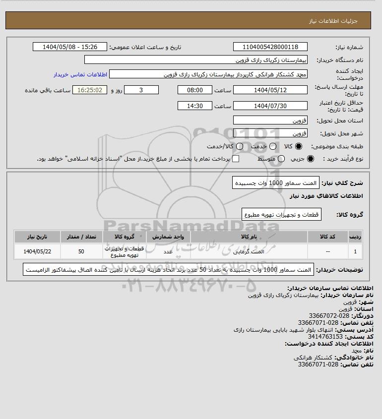 نام دستگاه خریدار:بیمارستان زکریای رازی قزوین