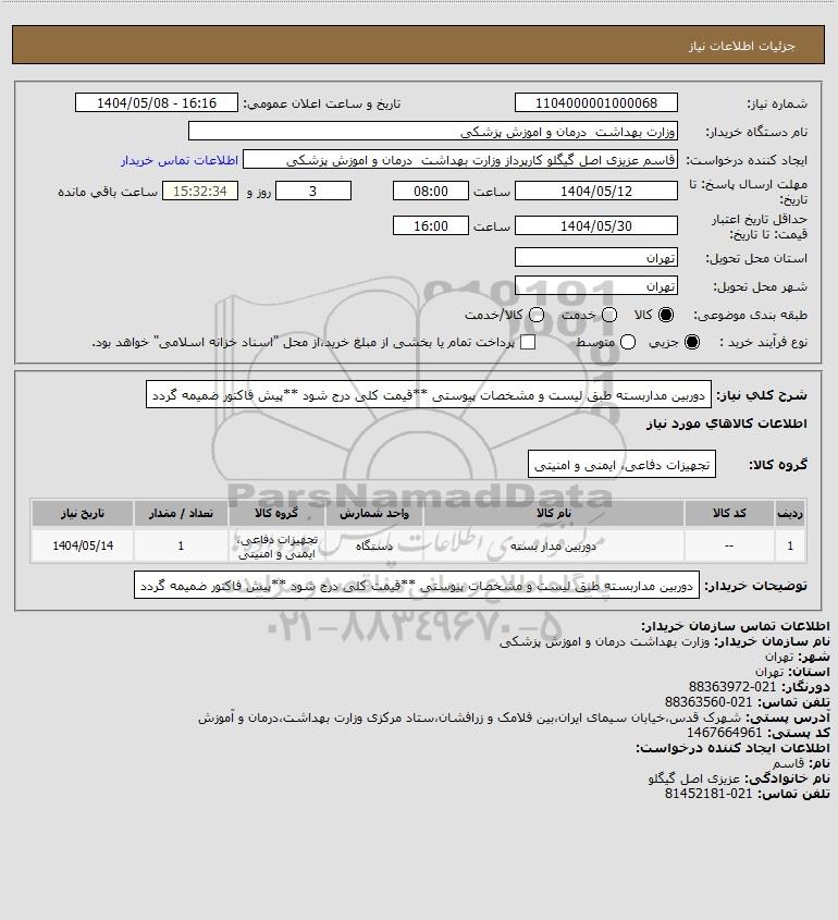 نام سازمان خریدار: وزارت بهداشت درمان و اموزش پزشکی