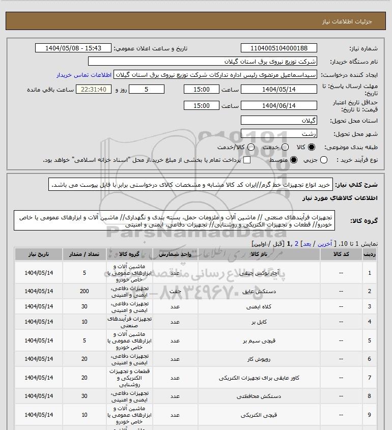 استعلام خرید انواع تجهیزات خط گرم//ایران کد کالا مشابه و مشخصات کالای درخواستی برابر با فایل پیوست می باشد., استعلام خرید انواع تجهیزات خط گرم//ایران کد کالا مشابه و مشخصات کالای درخواستی برابر با فایل پیوست می باشد.