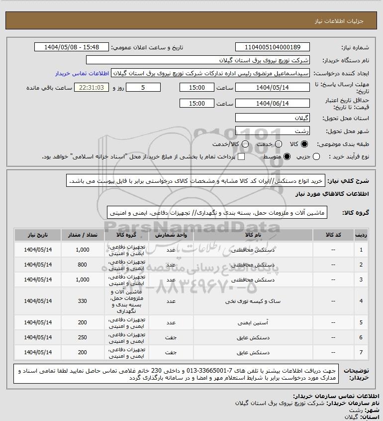 استعلام خرید انواع دستکش//ایران کد کالا مشابه و مشخصات کالای درخواستی برابر با فایل پیوست می باشد., استعلام خرید انواع دستکش//ایران کد کالا مشابه و مشخصات کالای درخواستی برابر با فایل پیوست می باشد.