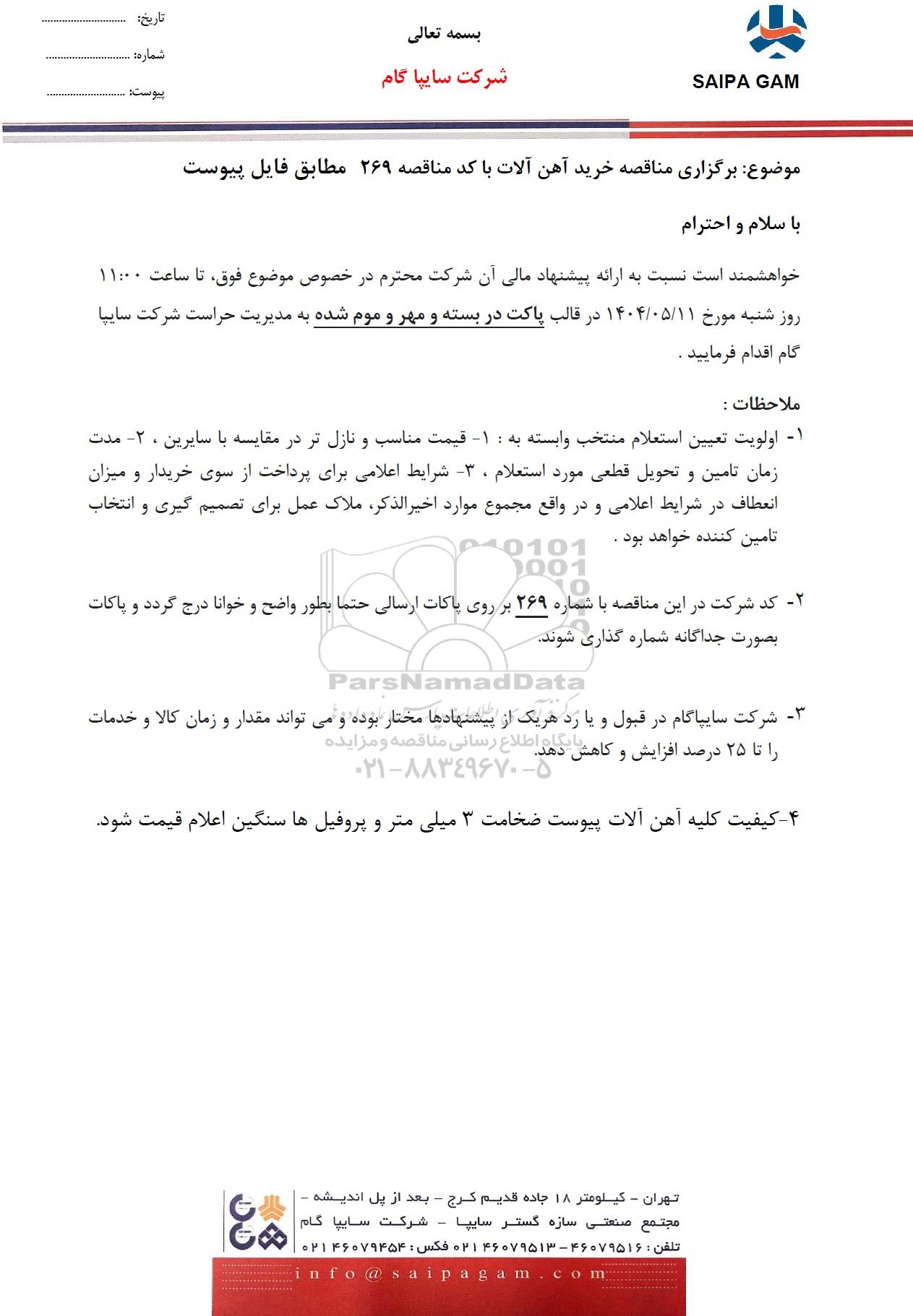 موضوع: برگزاری مناقصه خرید آهن آلات با کد مناقصه 269 مطابق فایل پیوست
