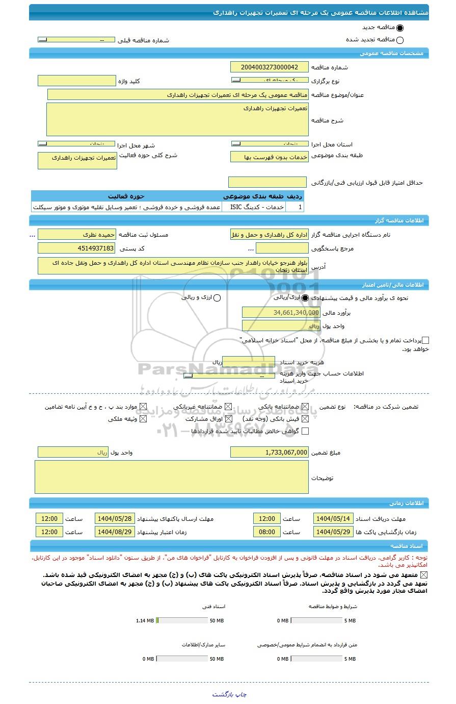 مناقصه مناقصه عمومی یک مرحله ای تعمیرات تجهیزات راهداری, مناقصه، مناقصه عمومی یک مرحله ای تعمیرات تجهیزات راهداری