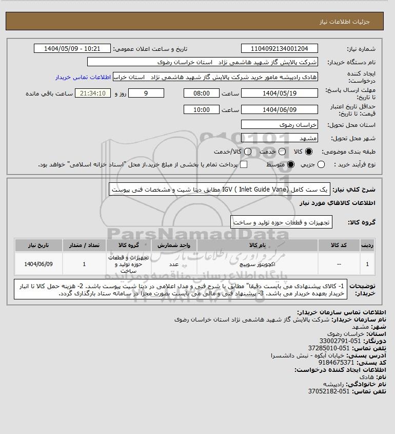 نام دستگاه خریدار:شرکت پالایش گاز شهید هاشمی نژاد استان خراسان رضوی