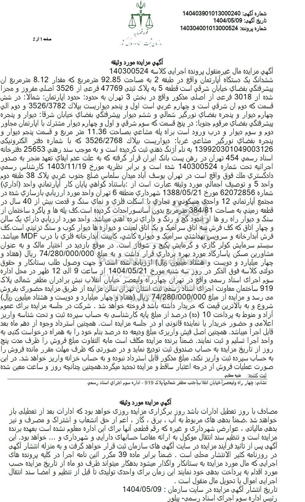 مزایده ملک به پلاک ثبتی 47769 فرعی از 3526 اصلی, مزایده ملک به پلاک ثبتی 47769 فرعی از 3526 اصلی