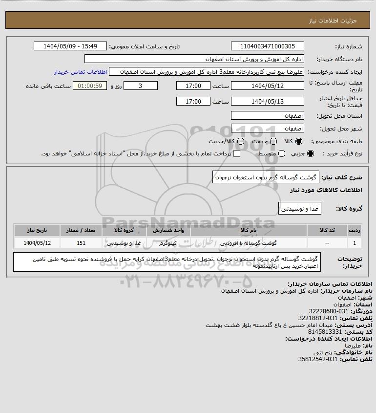 شرح کلی نیاز: گوشت گوساله گرم بدون استخوان نرجوان