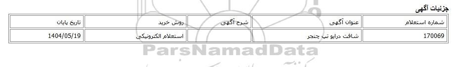 | 170069 | شافت درایو تپ چنجر | استعلام الکترونیکی | 1404/05/19 |