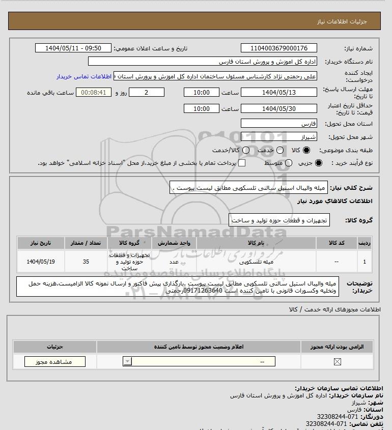 نام سازمان خریدار: اداره کل اموزش و پرورش استان فارس