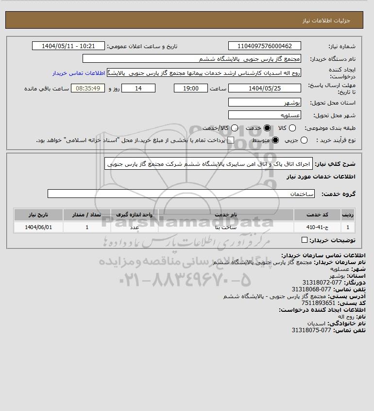 شرح کلی نیاز: اجرای اتاق پاک و اتاق امن سایبری پالایشگاه ششم شرکت مجتمع گاز پارس جنوبی