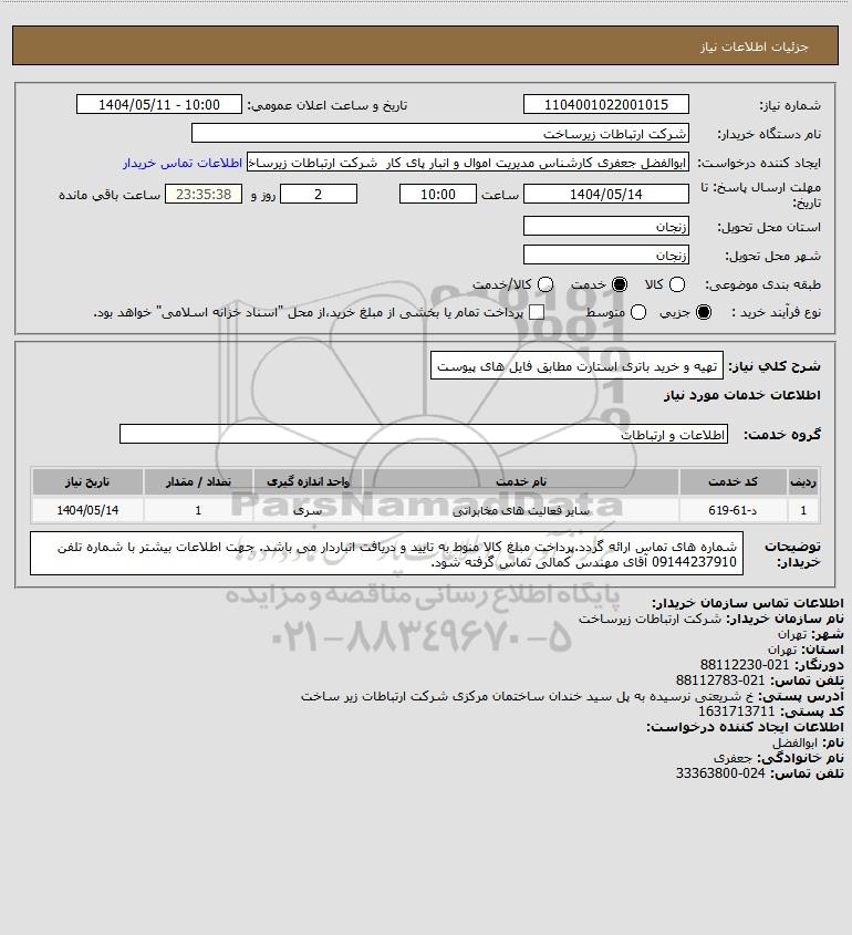 نام سازمان خریدار: شرکت ارتباطات زیرساخت