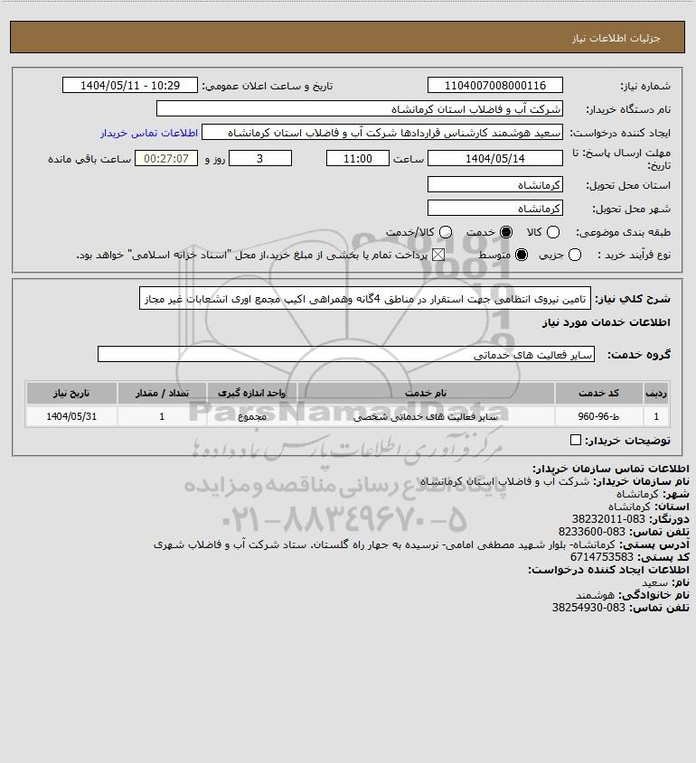 نام دستگاه خریدار:شرکت آب و فاضلاب استان کرمانشاه