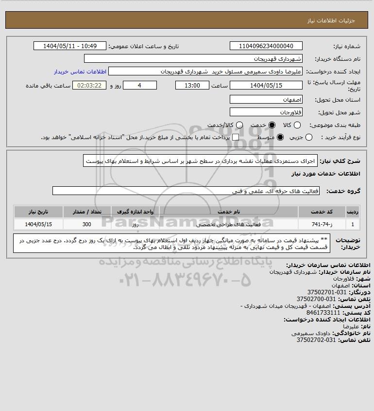 استعلام اجرای دستمزدی عملیات نقشه برداری در سطح شهر بر اساس شرایط و استعلام بهای پیوست, استعلام اجرای دستمزدی عملیات نقشه برداری در سطح شهر بر اساس شرایط و استعلام بهای پیوست