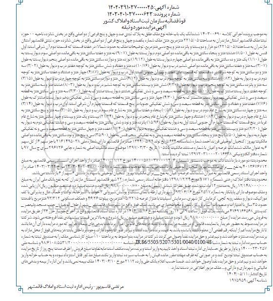 مزایده فروش یکباب خانه به پلاک ثبتی 145 فرعی از دو اصلی, مزایده فروش یکباب خانه به پلاک ثبتی 145 فرعی از دو اصلی