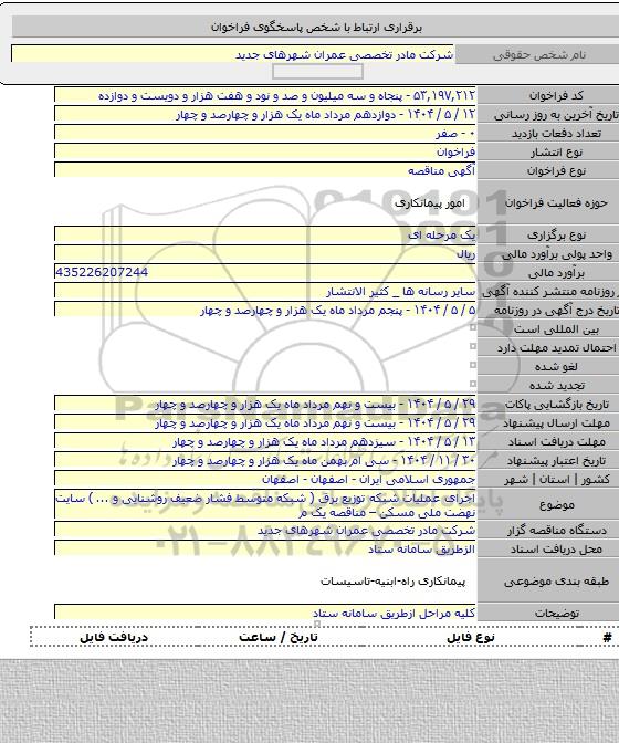 14 استعلام احداث شبکه پوششی شهری میبد سال1404 9733620 1404/07/29 new not special not payed یزد
