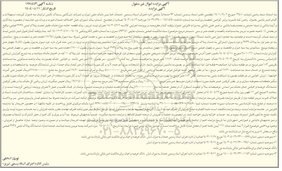 مزایده فروش یک قطعه خانه تحت پلاک ثبتی 3735 اصلی
