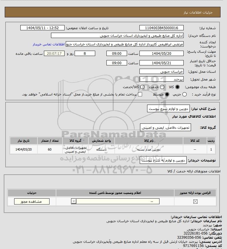 نام دستگاه خریدار:اداره کل منابع طبیعی و ابخیزداری استان خراسان جنوبی