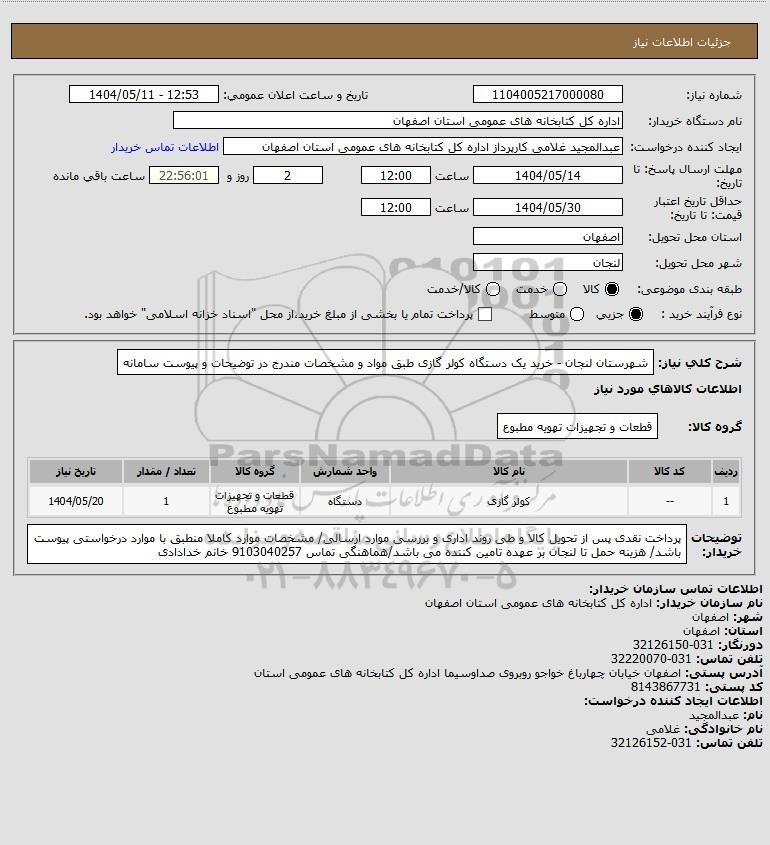 نام دستگاه خریدار:اداره کل کتابخانه های عمومی استان اصفهان
