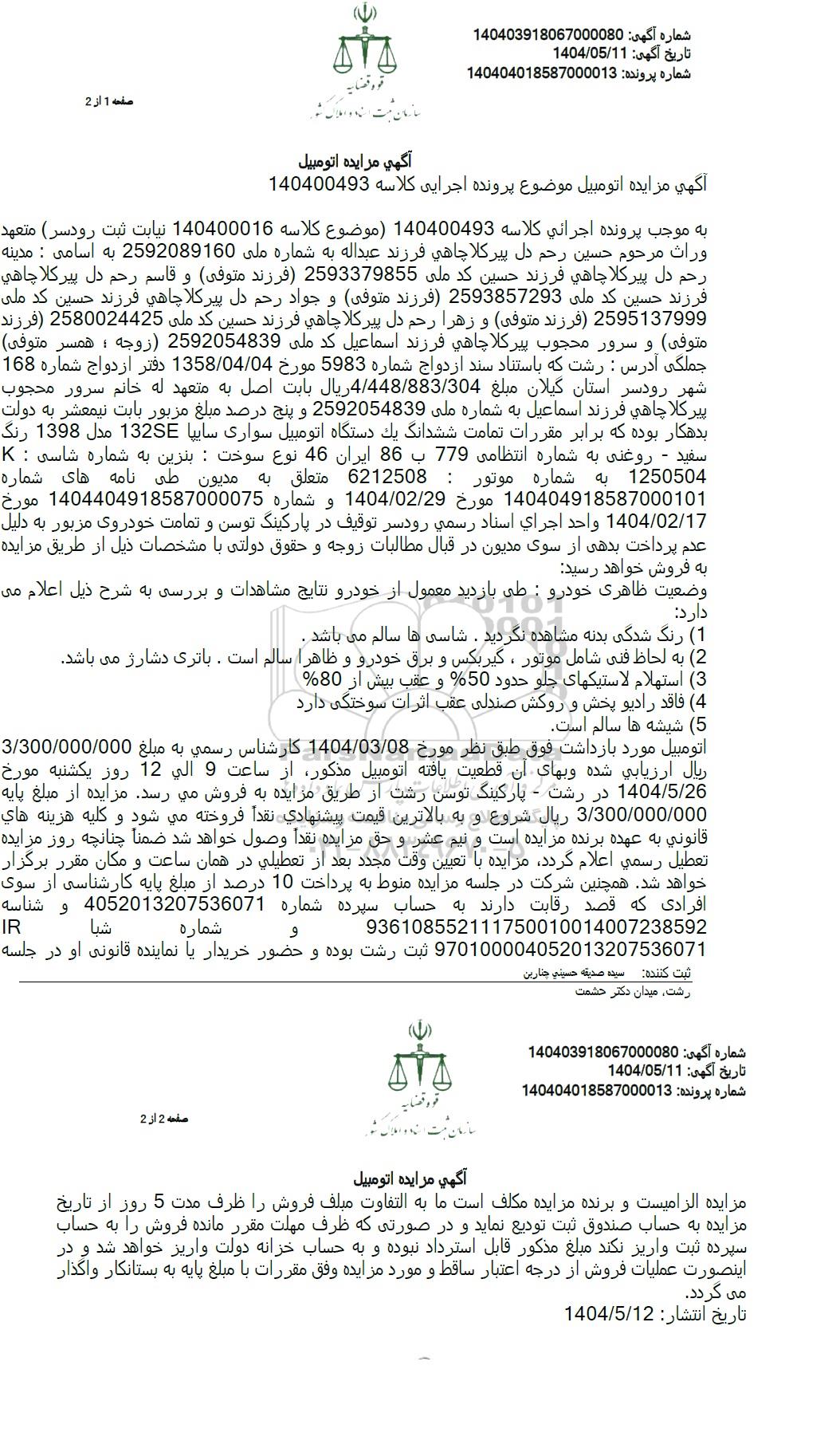 مزایده یک دستگاه اتومبیل سواری سایپا , مزایده یک دستگاه اتومبیل سواری سایپا