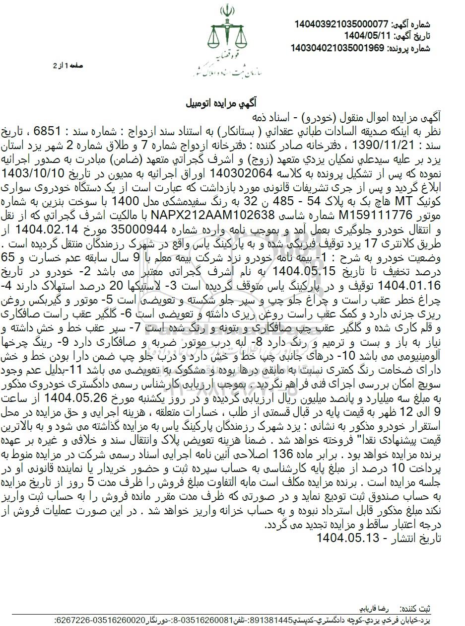 تاریخ مزایده : 1404.5.26 از ساعت 9 الی 12 ظهر روز یکشنبه