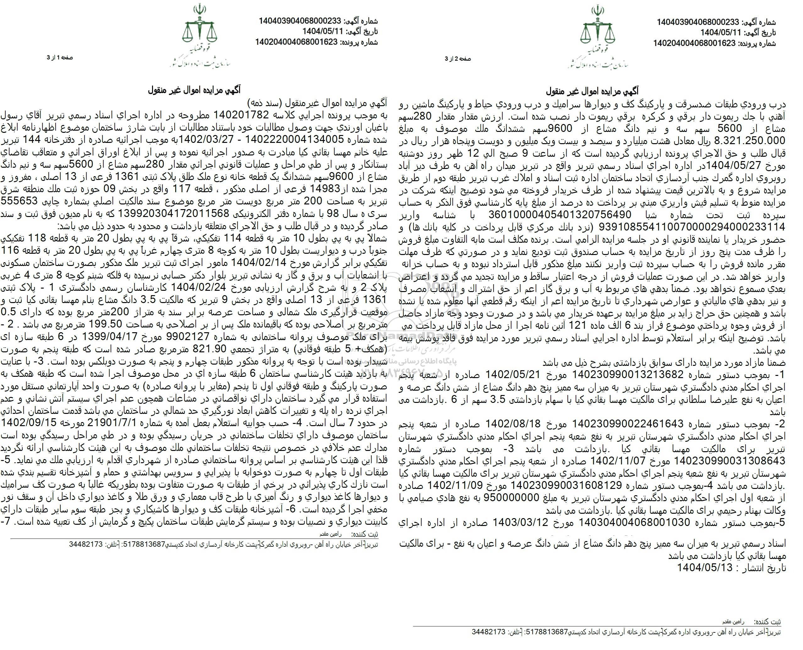 مزایده از ساعت 9 الی 12 روز دوشنبه مورخ 1404.05.27