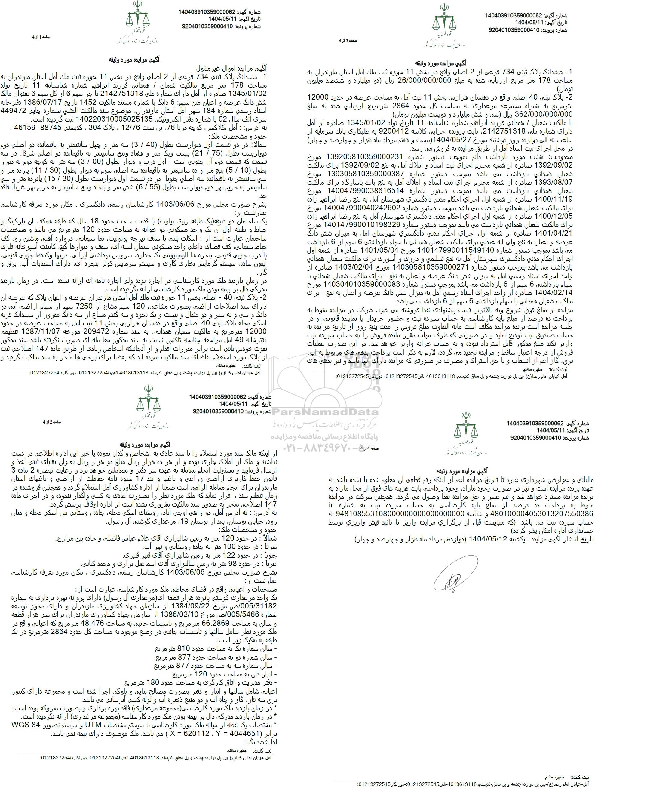 مزایده فروش ملک به مساحت 178 مترمربع پلاک ثبتی 734 فرعی از 2 اصلی