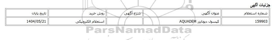 159903کپسول دیونایزر AQUADEMاستعلام الکترونیکی1404/05/21