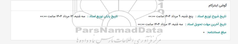 تاریخ پایان توزیع اسناد: سه شنبه، 14 مرداد 1404 ساعت 00:00