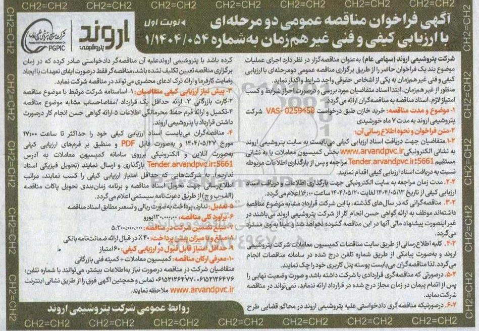 با ارزیابی کیفی و فنی غیر هم زمان به شماره 1/1404/054