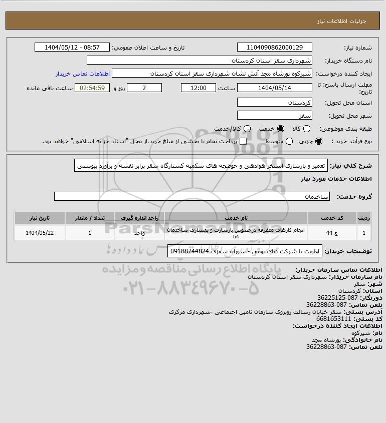 توضیحات خریدار:اولویت با شرکت های بومی - سوران سقزی 09188744824