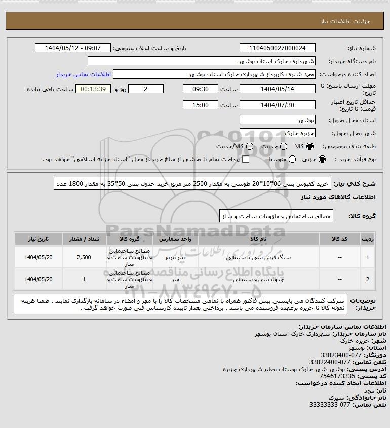 نام دستگاه خریدار:شهرداری خارک استان بوشهر