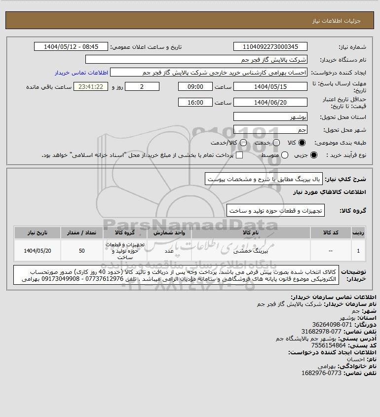 نام دستگاه خریدار:شرکت پالایش گاز فجر جم