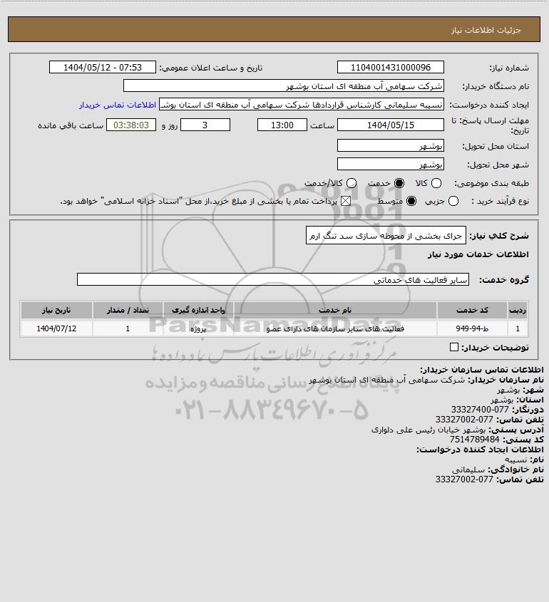 شرح کلی نیاز: جرای بخشی از محوطه سازی سد تنگ ارم