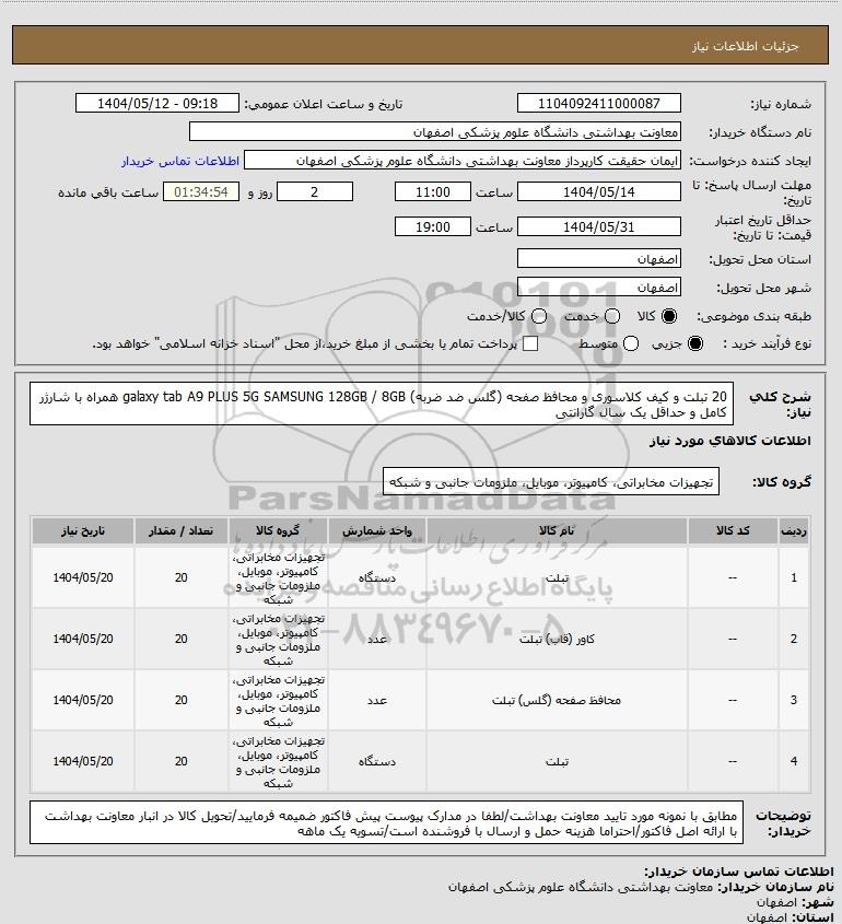 1 -- تبلت دستگاه تجهیزات مخابراتی، کامپیوتر، موبایل، ملزومات جانبی و شبکه 20 1404/05/20