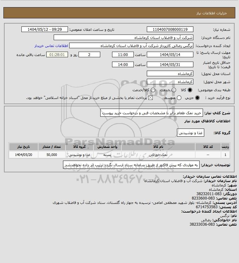 استعلام خرید نمک طعام برابر با مشخصات فنی و درخواست خرید پیوست, استعلام خرید نمک طعام برابر با مشخصات فنی و درخواست خرید پیوست