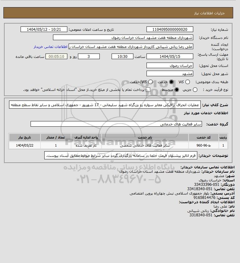 شرح کلی نیاز: عملیات انحراف ترافیکی معابر سواره رو بزرگراه شهید سلیمانی - 17 شهریور - جمهوری اسلامی و سایر نقاط سطح منطقه