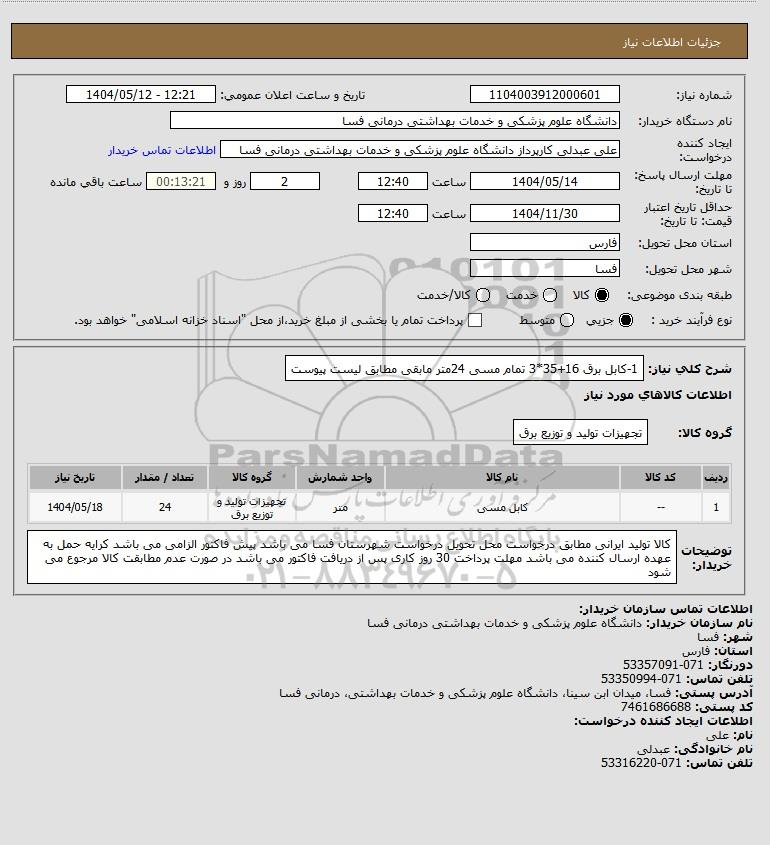شرح کلی نیاز: 1-کابل برق 16+35*3 تمام مسی 24متر