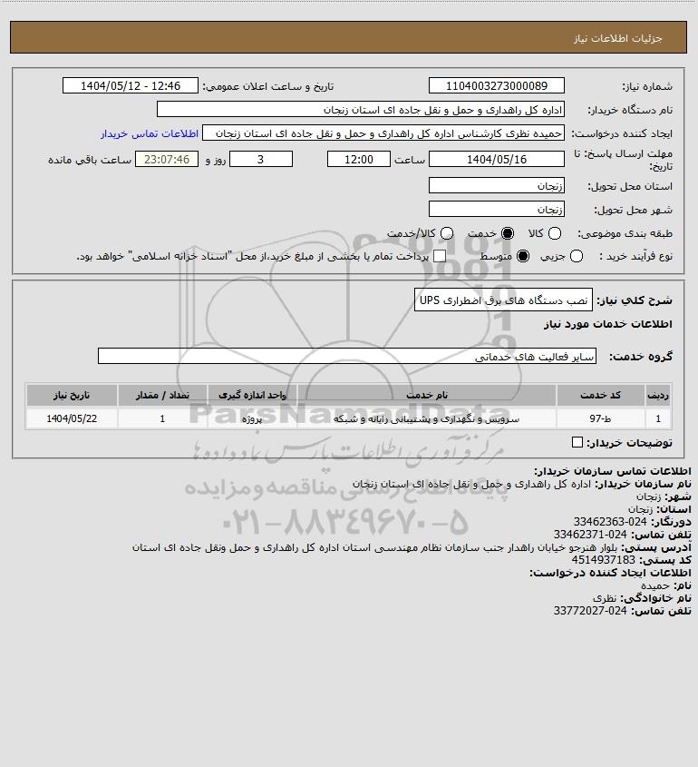 شرح کلی نیاز: نصب دستگاه های برق اضطراری UPS