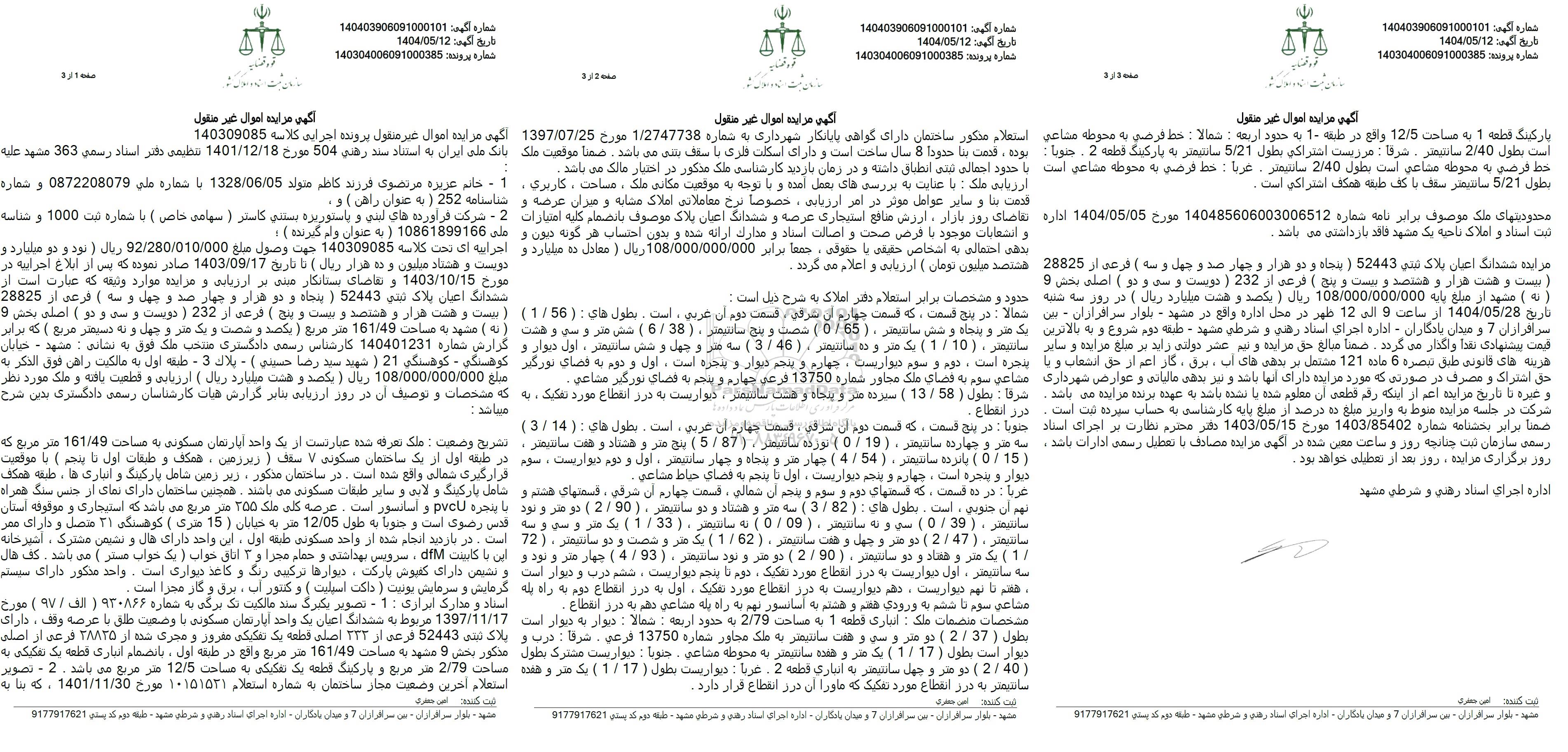 تاریخ مزایده 1404.05.28 ساعت 9 الی 12