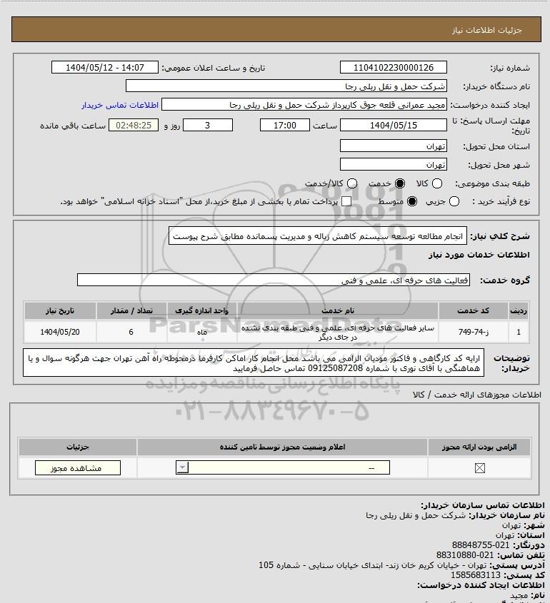 جهت دریافت اطلاعات کامل این آگهی به سامانه ستاد ایران مراجعه فرمایید