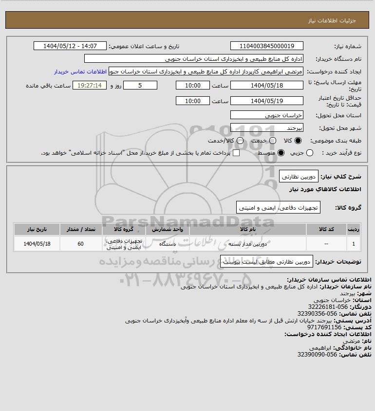 نام دستگاه خریدار:اداره کل منابع طبیعی و ابخیزداری استان خراسان جنوبی