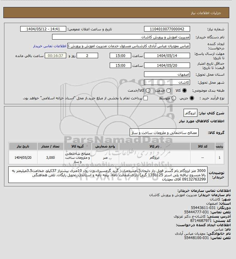 1 -- ایزوگام متر مصالح ساختمانی و ملزومات ساخت و ساز 3,000 1404/05/20