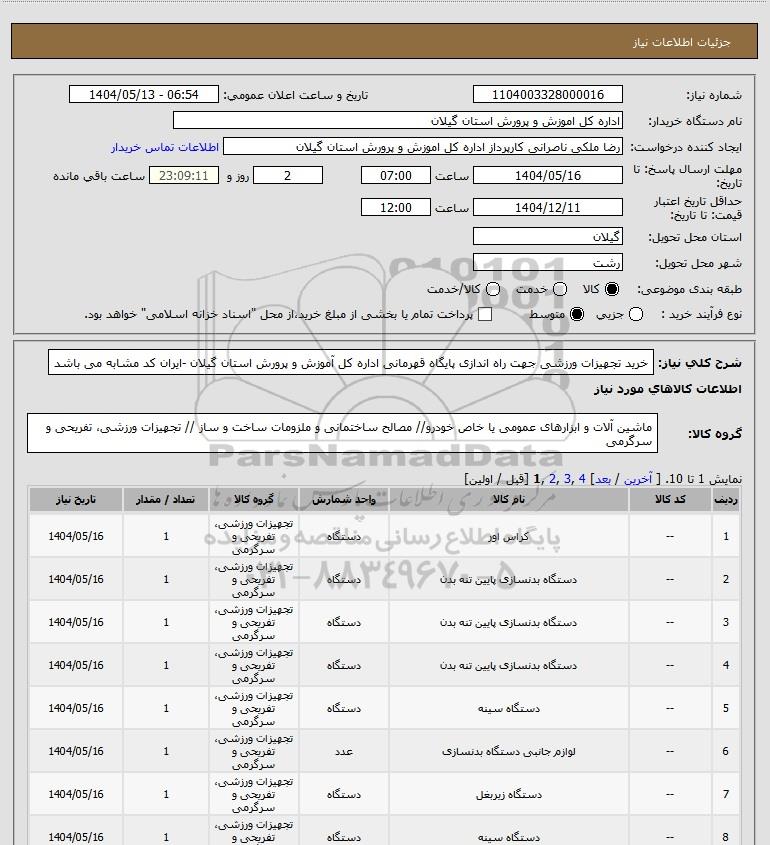 نام دستگاه خریدار:اداره کل اموزش و پرورش استان گیلان