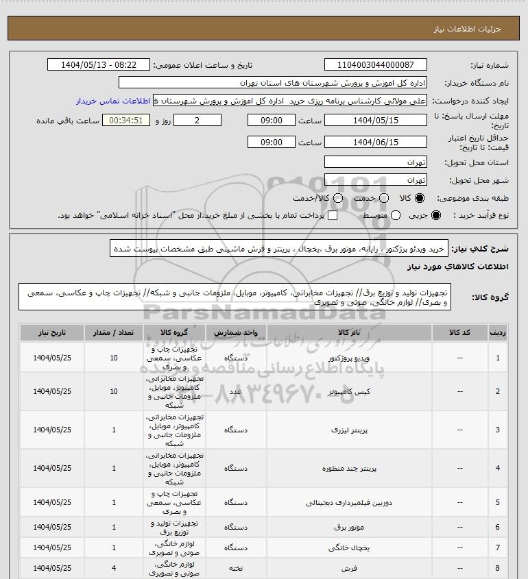 1 -- ویدیو پروژکتور دستگاه تجهیزات چاپ و عکاسی، سمعی و بصری 10 1404/05/25