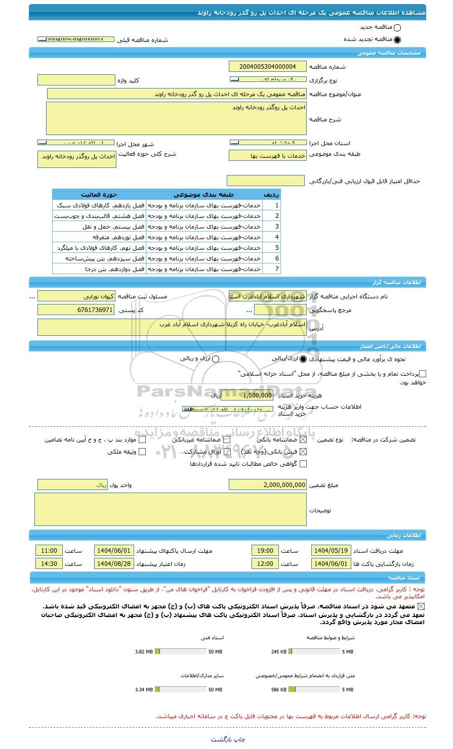 | شرح مناقصه | احداث پل روگذر رودخانه راوند | ||||||||||||||||||||||||||