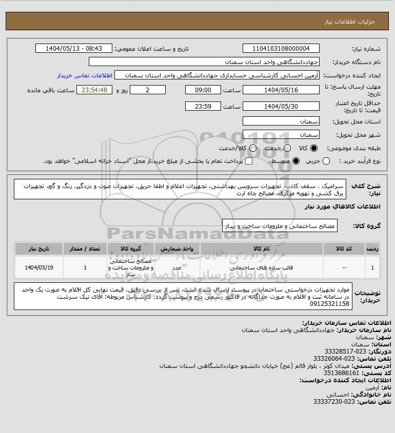 1 -- قالب سازه های ساختمانی عدد مصالح ساختمانی و ملزومات ساخت و ساز 1 1404/05/19