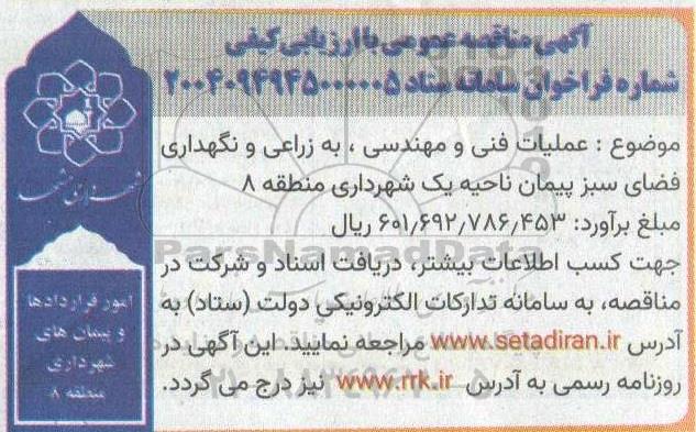 مناقصه عمومی عملیات فنی و مهندسی، به زراعی و نگهداری فضای سبز پیمان ناحیه یک, مناقصه عمومی عملیات فنی و مهندسی، به زراعی و نگهداری فضای سبز پیمان ناحیه یک