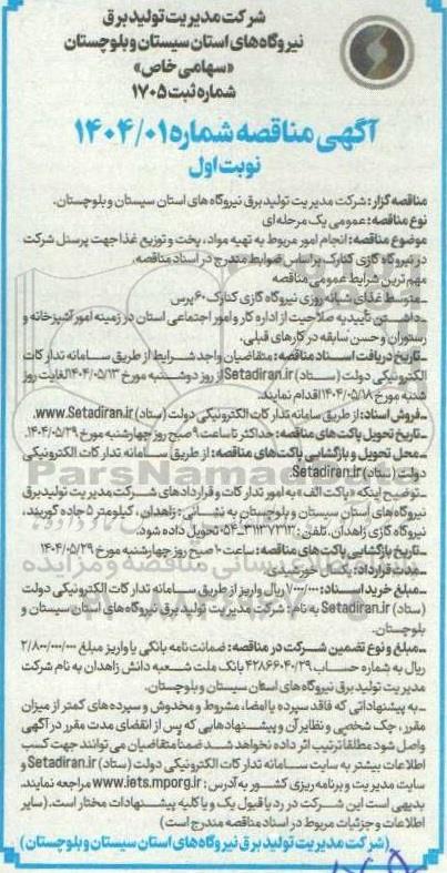 مناقصه گزار: شرکت مدیریت تولید برق نیروگاههای استان سیستان و بلوچستان