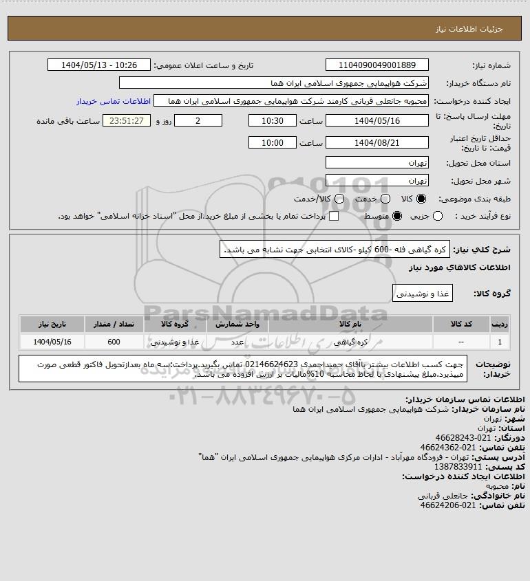 نام دستگاه خریدار:شرکت هواپیمایی جمهوری اسلامی ایران هما