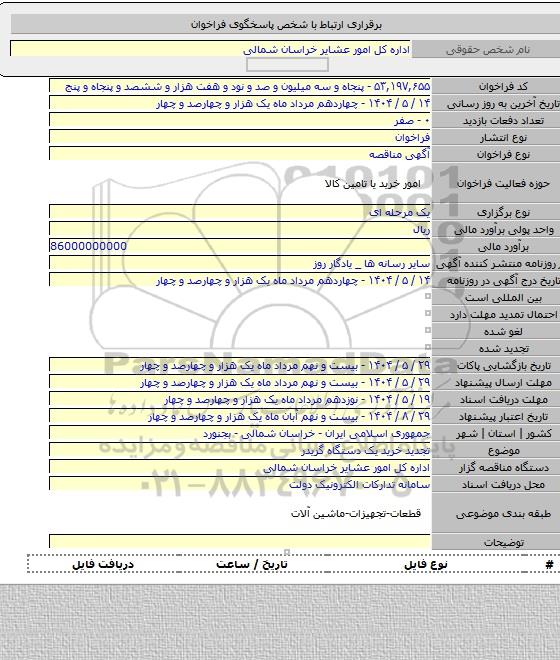 5 مناقصه خرید یک دستگاه کاربری آتش نشانی... 9810358 1404/08/15 new not special not payed خراسان رضوی